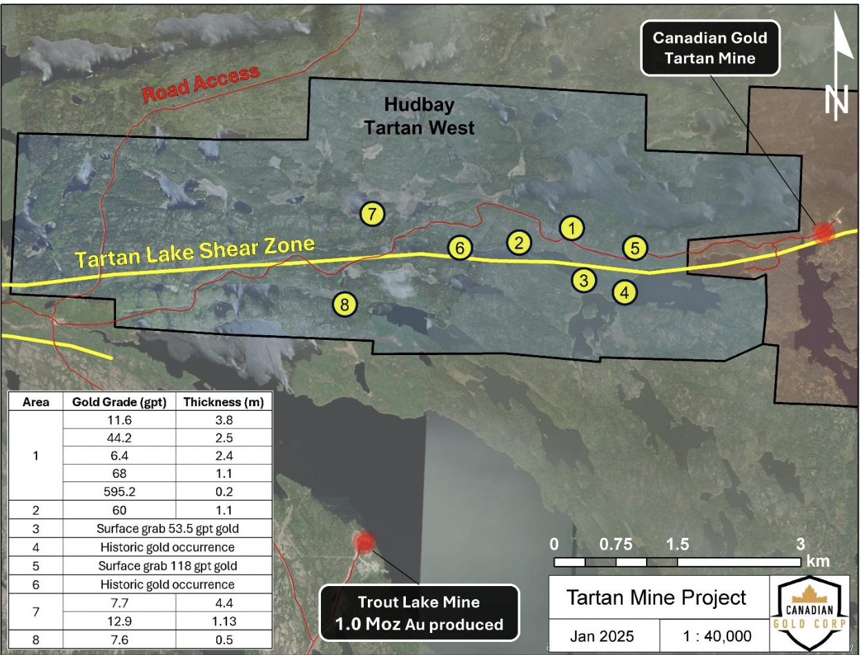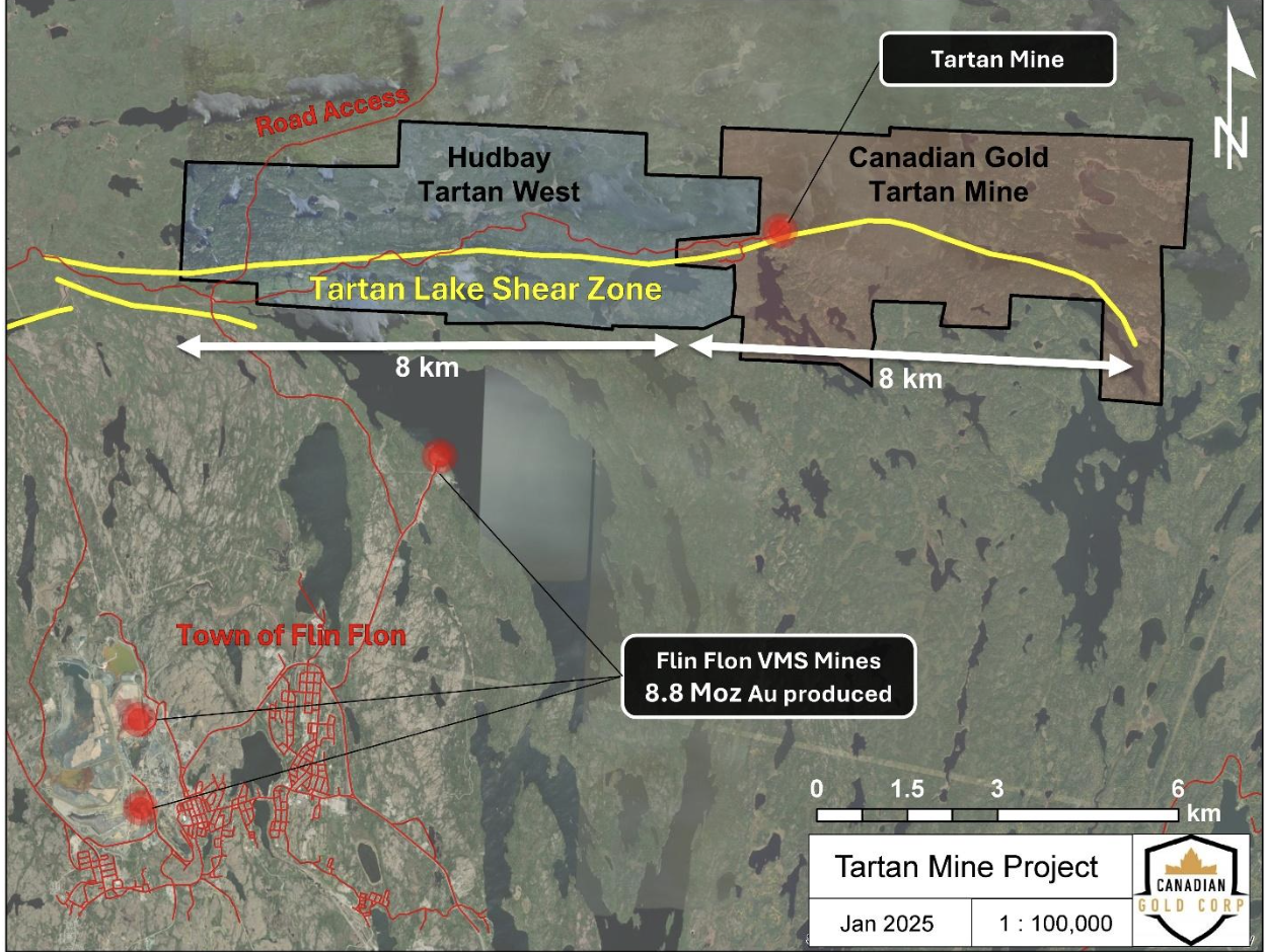 Flin Flon, Manitoba – July 17, 2025 – Canadian Gold Corp. (“Canadian Gold” or the “Company”) (TSX-V: CGC) is pleased to announce the commencement of two independent field exploration programs, one at the Tartan West Property (recently optioned from Hudbay Minerals Inc.) located immediately adjacent to the west of the Tartan Mine Property in Flin Flon, MB, and the other at the Hammond Reef South Property located near Atikokan, Ontario, adjacent to Agnico Eagle’s fully permitted Hammond Reef Gold Deposit.